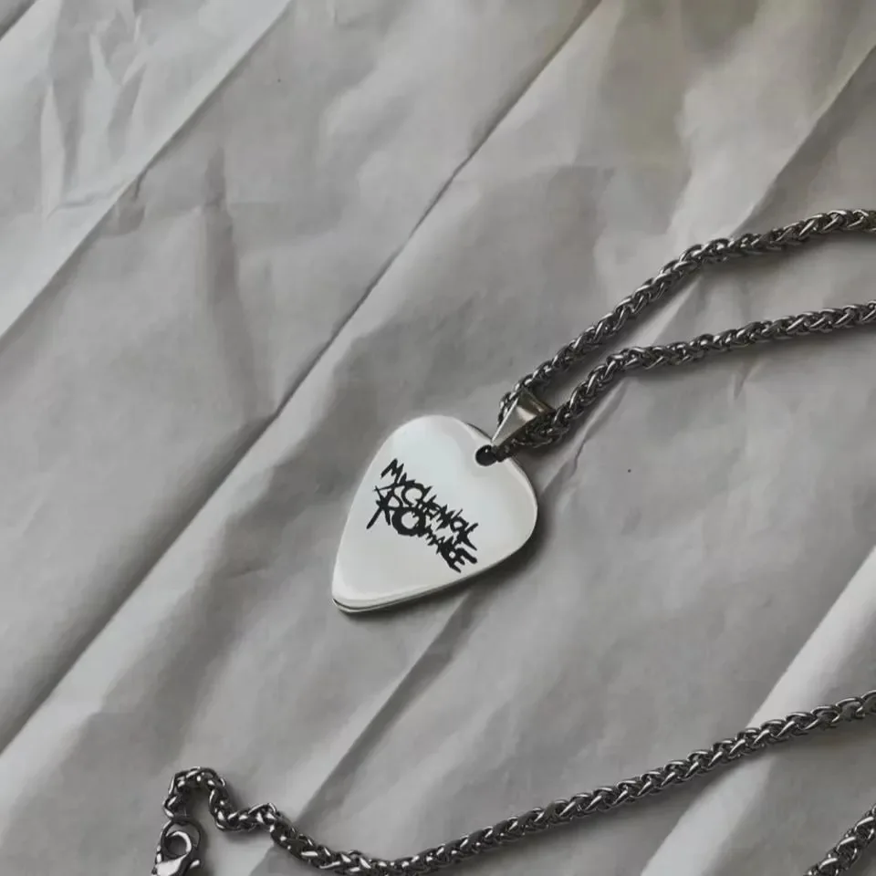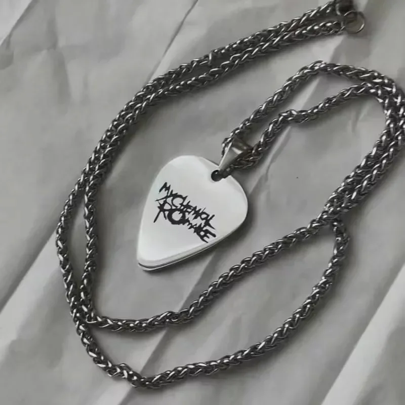 My Chemical Romance Cosplay Stainless Steel Necklace Men Women Rock Band Guitar Pick Pendant Choker Jewelry Accessories Gifts